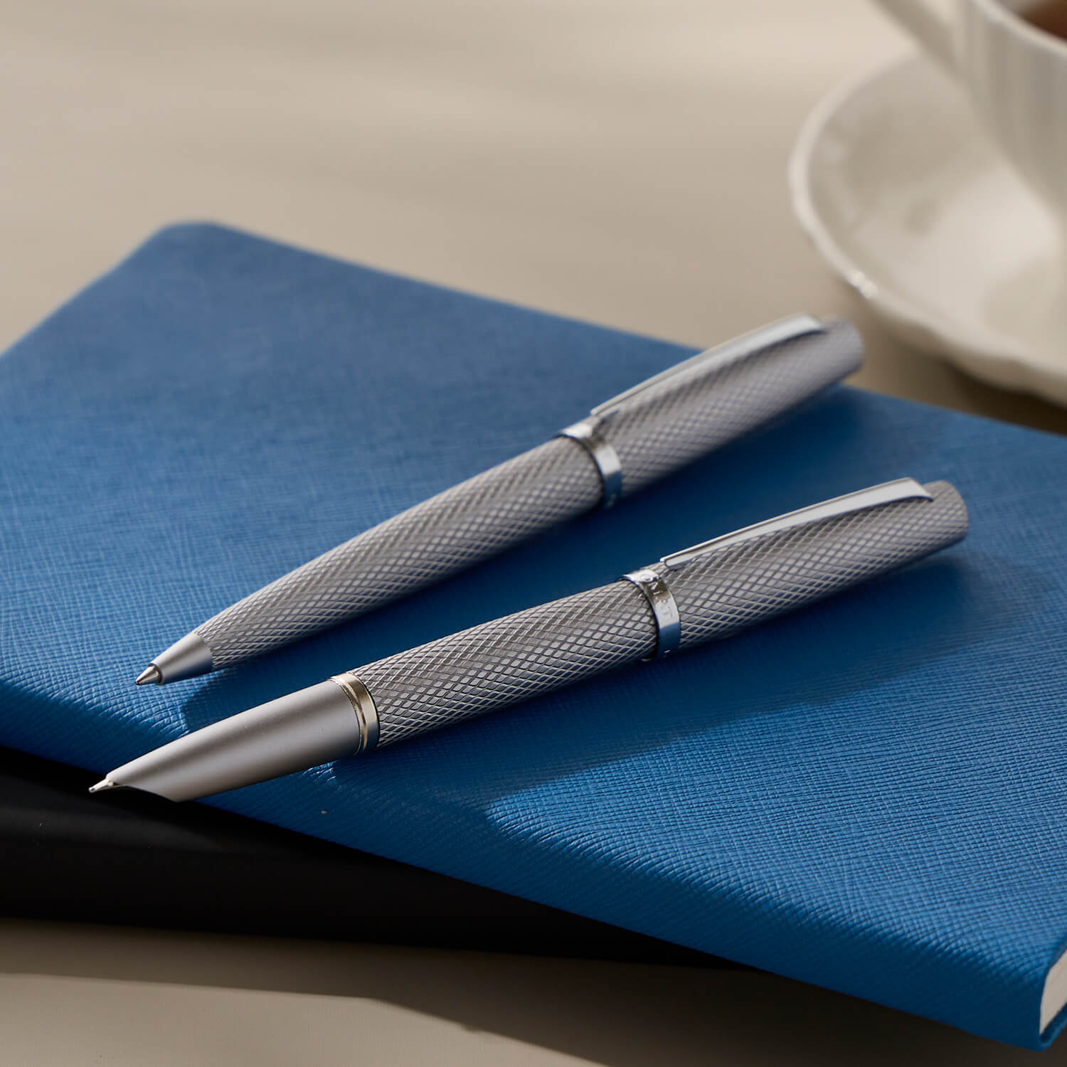 本体表面のフルーティング(縦溝装飾)はデザイン性だけでなく、筆記時の握りやすさと安定感も高めるように設計されています。