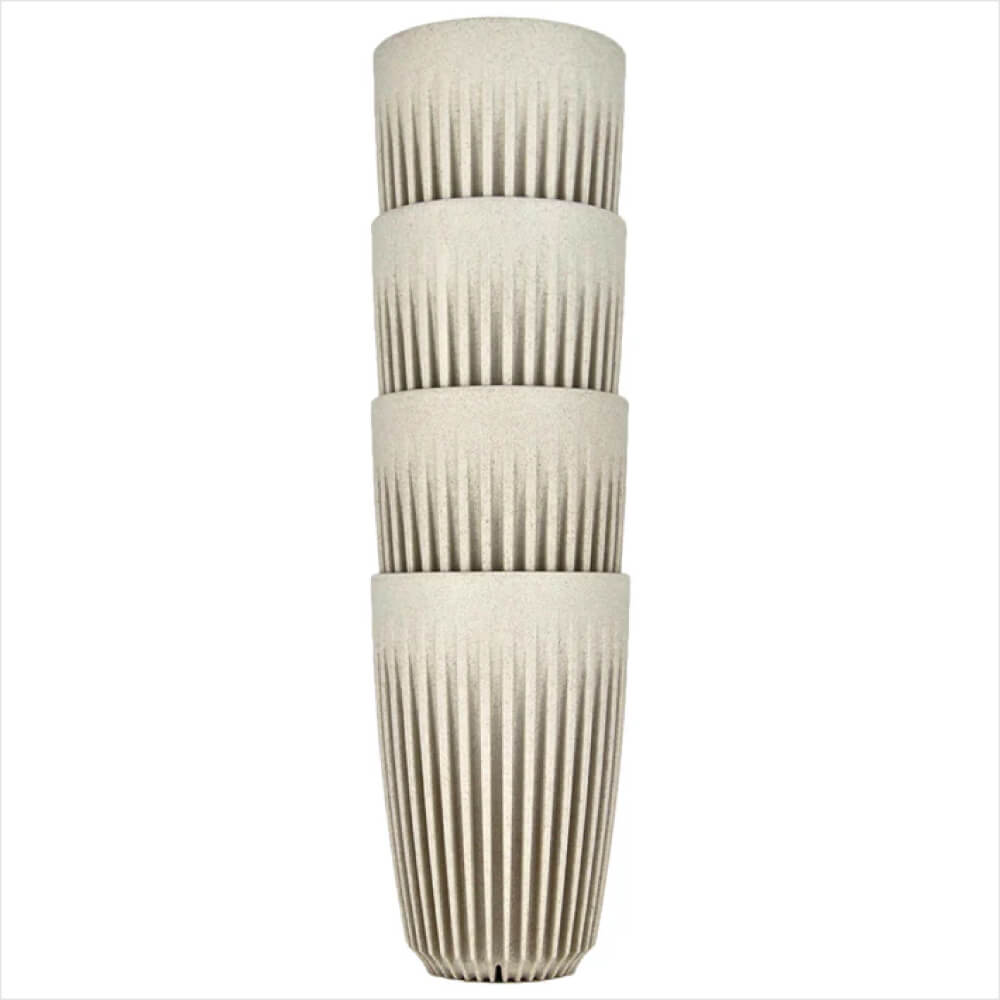 コーヒーの精製過程に不要物として大量に処分されている「コーヒーハスク」を利用して創られたハスキーオリジナル。シンプルで飽きのこないカラーとフォルム、表面の凹凸(ストライプ加工)が特徴的。マット調でシックな落ち着いたカラーのチャコールと、ハスクの素材感を楽しむことの出来るナチュラルの2色展開です。