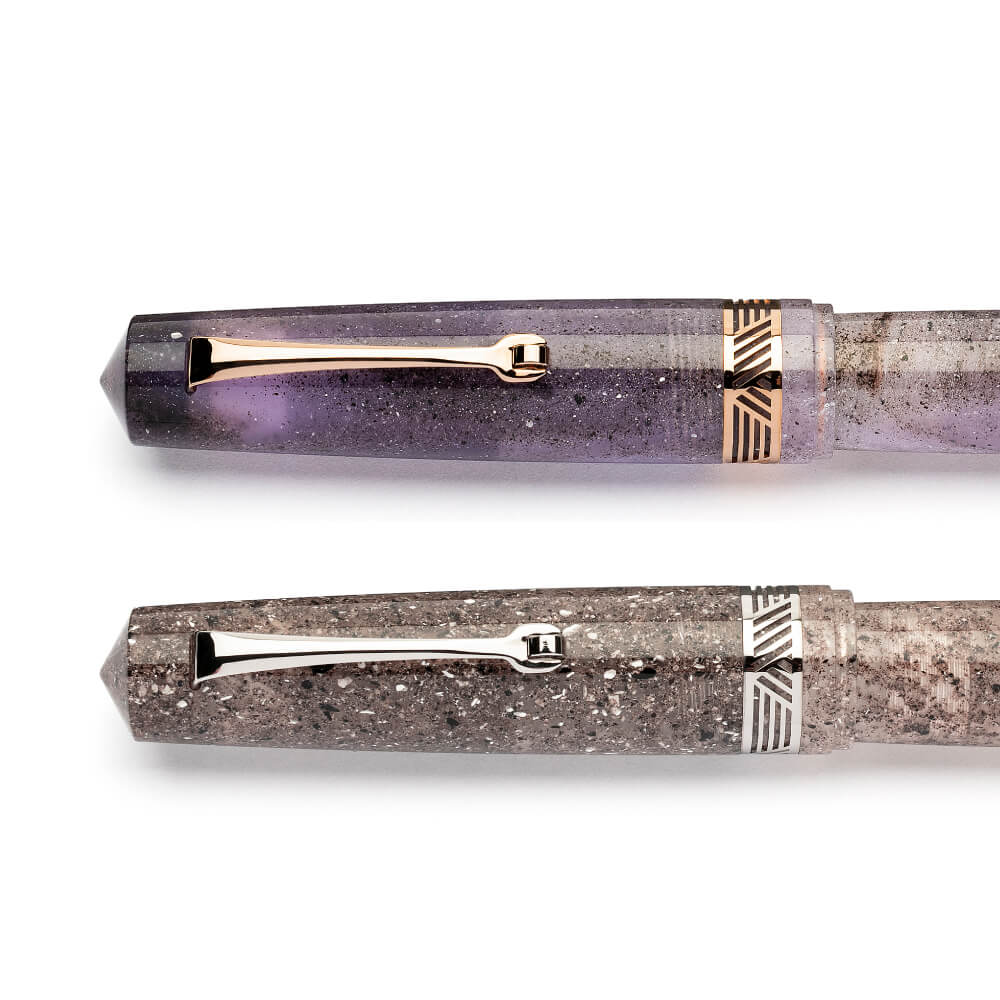 1.5mlの大容量のピストンフィリング式、トリムは「シーサンド」がゴールドとシルバーの2種類から、「アメジスト」はローズゴールドとシルバーの2種類から選択可能です。